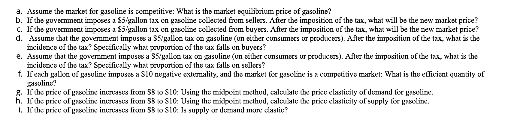 Solved Supply And Demand For Gasoline Assume That The Chegg Com